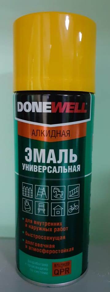 Эмаль аэрозольная универсальная Donewell желтая 520мл