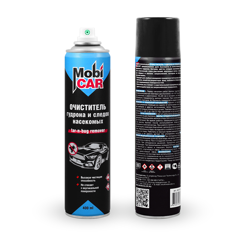 Профессиональный очиститель гудрона и следов насекомых MobiCAR® предназначен для быстрого и качественного удаления дорожного гудрона, битума, дёгтя, следов насекомых, биологических загрязнений, сока растений, масляных пятен, а также различных твёрдых и липких загрязнений, которые не смываются при обычной мойке.