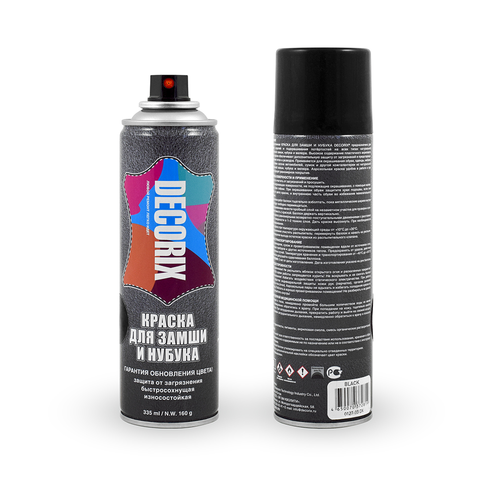 Высококачественная краска для замши и нубука DECORIX® предназначена для обновления изделий и подкрашивания потёртостей на всех типах натуральной и искусственной замши, нубука и велюра.