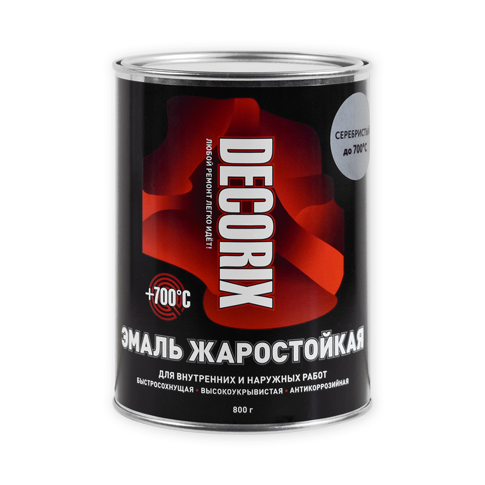 Эмаль жаростойкая +700°С Decorix серебристый 0,8кг