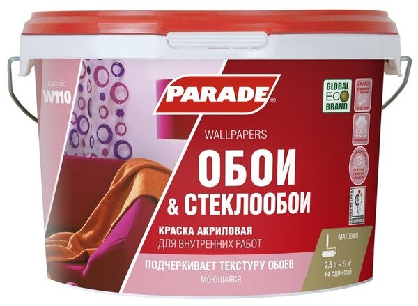 Краска акриловая для обоев Parade W110 белая матовая 2,5л