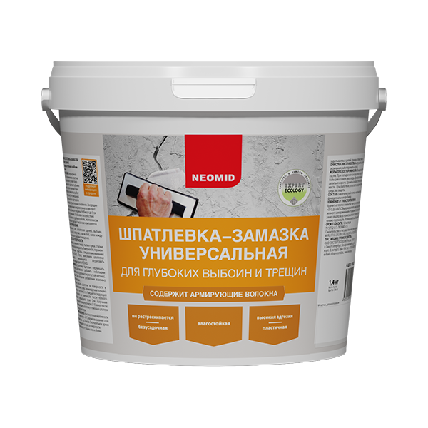 Безусадочная готовая к применению шпатлевка на акриловой основе предназначена для заделки глубоких выбоин, щелей и трещин при проведении ремонтных работ снаружи и внутри помещений. Обладает высокой адгезией к любым видам строительных оснований. Входящие в состав армирующие микроволокна позволяют заполнять выбоины и трещины глубиной до 5 см без растрескивания. Устойчива к воздействию влаги. Пластична и удобна в работе. Экологически безопасна, не содержит токсичных компонентов