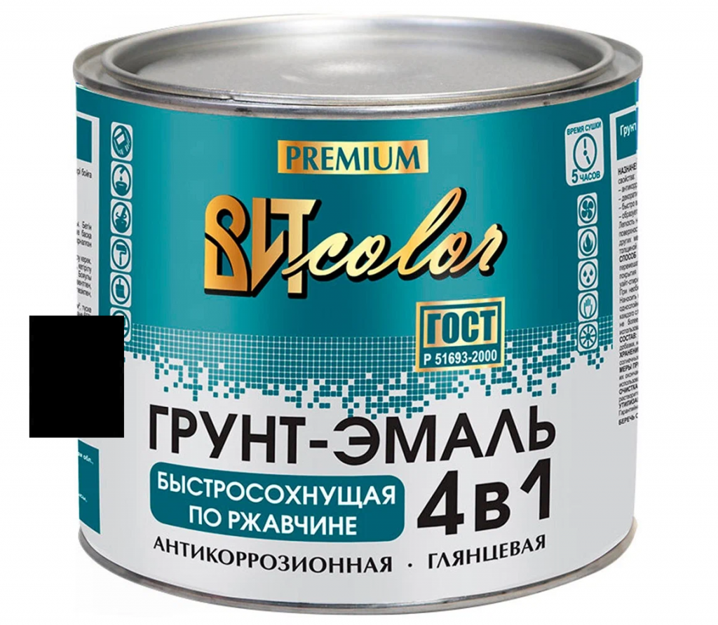 Грунт эмаль по ржавчине 4 в 1 Вит color черная быстросохнущая универсальная RAL 9005 1,8кг